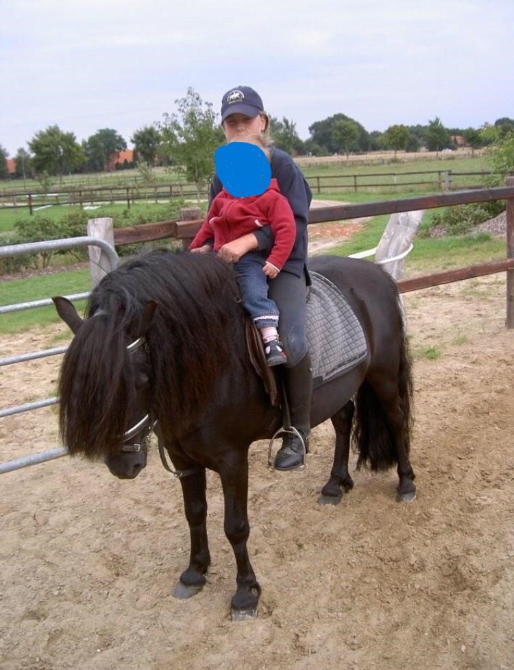 Ein kleiner Shettyhengst, mit dem ich durch dick und dünn ging, bis ich ihm entwachsen war. Er wählte seine Menschen selbst aus und war nicht für jeden Reiter geeignet.